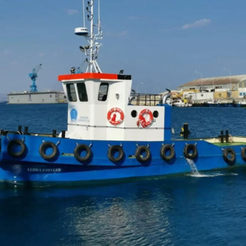Ledra Pioneer is 17m long, a twin screw small tug capable of operating at speeds in excess of 12 knots. Can perform operations in all types of weather due to its specific construction providing a range of other services such as crew exchange and light supplies.